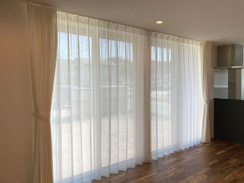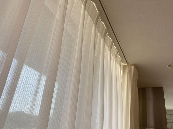 新築のリビングにすでに設置済みのカーテンレールだが、そこにドレープカーテンとレースカーテンを取付したい。