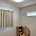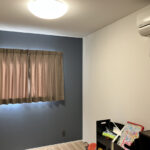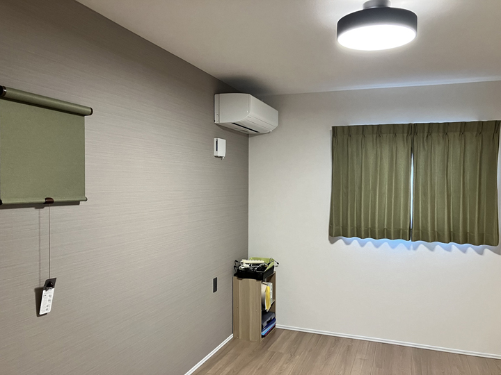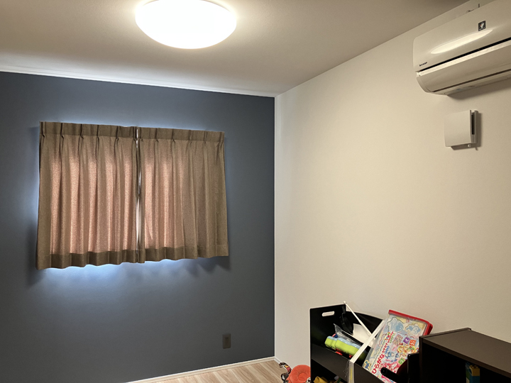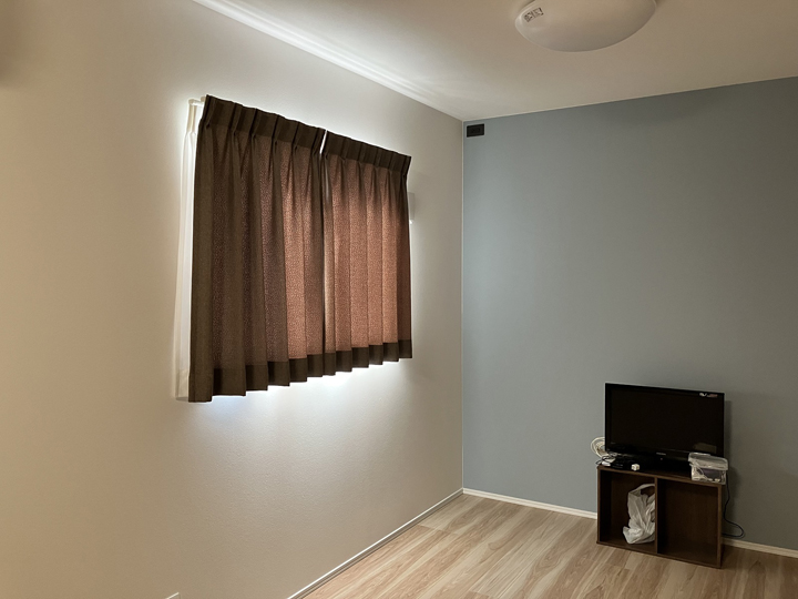2階は部屋によってアクセントクロスが異なり、「子供室だけど子供室っぽすぎないおしゃれな雰囲気」がご希望でした。お客様のご希望を叶えそれぞれのクロスに合ったカーテンをご提案し、良い感じにおしゃれな子供室となったと思います。