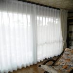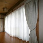 ご来店いただいた時はピンク系のカーテンと色違いのアイボリーとで迷っておられました。採寸にお伺いすると、応接室にはクラシックな赤いソファを置いておられたので、それを引き立てる様にカーテンの色をアイボリーにしました。北欧風のデザインで落ち着いた色合いと柄で応接室にも縁側にも良く合っています。