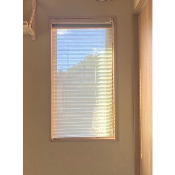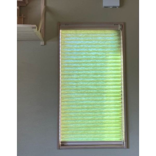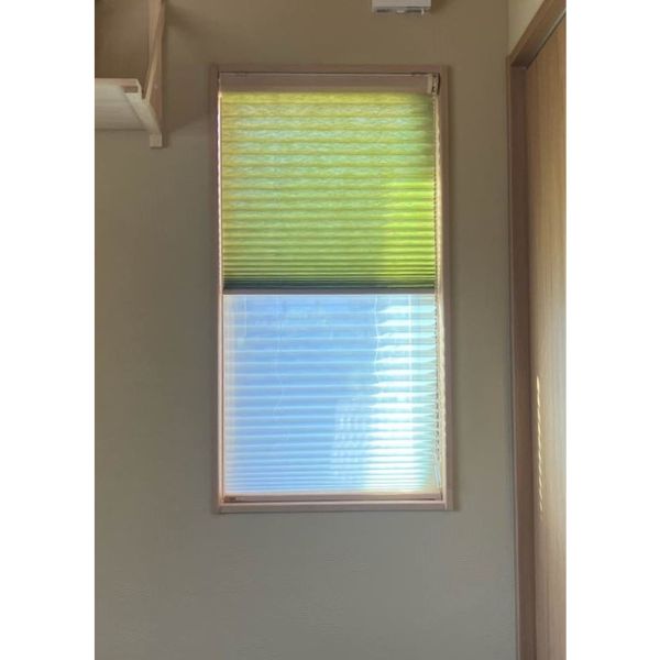 プリーツスクリーン ペアタイプは上下異なる生地で、日中はレース仕様・夜はしっかり目隠しできるカーテン仕様にできます。窓枠内に取付することで、スッキリとした印象です。