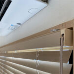 掃き出し窓は幅が2m80㎝あるので2台に分割して取付しました。ブラインドを少し引っ張ると自動で下がる自動降下機能を付けて、少しでも操作が楽になるようにご提案をしました。