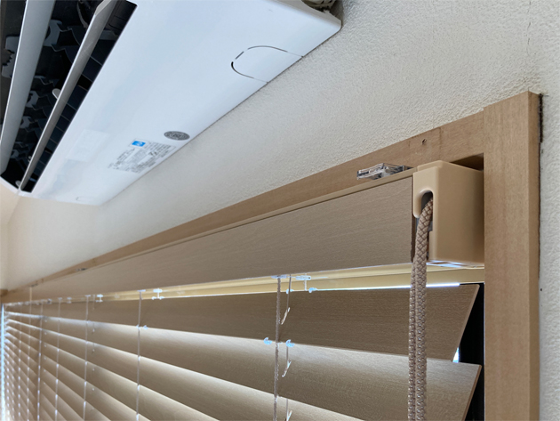 部屋の木部の色に合わせてナチュラルな色のブラインドにしました。