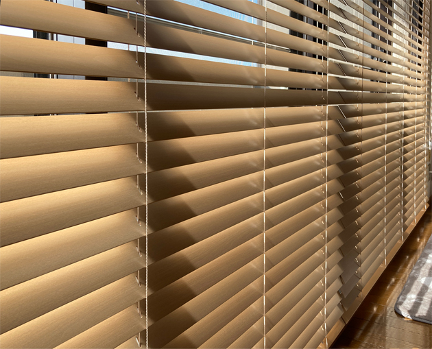 明るい雰囲気でリビングに良く合っていると喜んでいただきました。ウッドブラインドの木質感がリビングに高級感と安らぎの空間を演出してくれます。