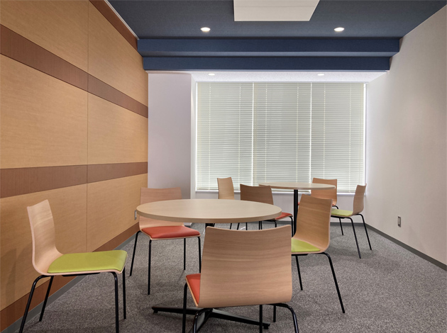 多くの窓に誰にでも使い易く、機能重視のブラインド、タチカワのモノコムをご提案。応接室にはスタイリッシュな縦型を提案しました。長年のお付き合いのあるお客様ですが、インテリアのセンスを信頼頂き、色、デザインを全てまかせていただきました。フレッシュで満喫をテーマに長く使って空きのこないデザインでまとめました。