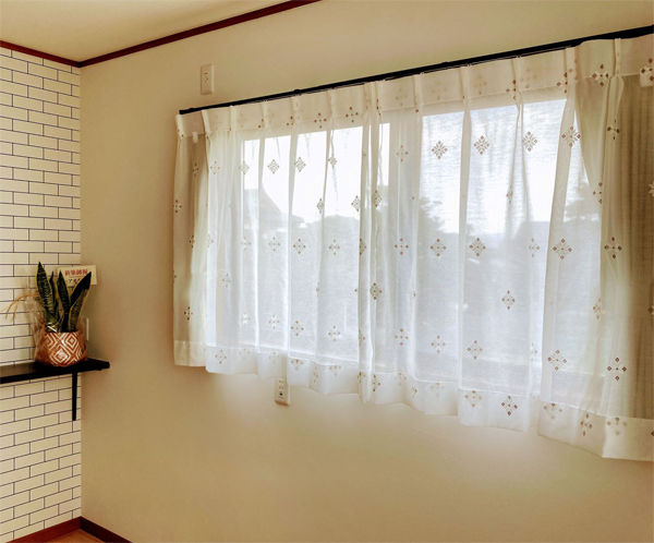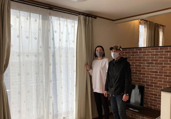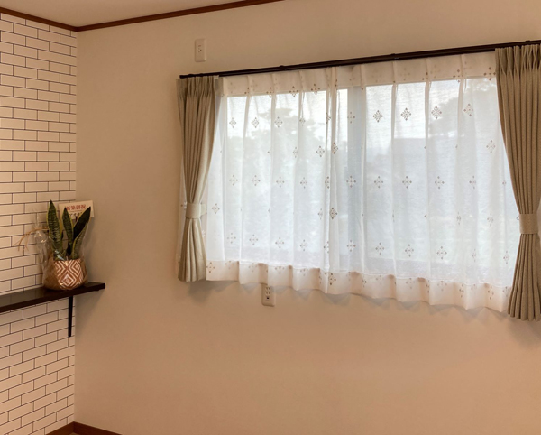 リビング・ダイニング・寝室に無地のナチュラルな遮光カーテン+各部屋ごとに魅力的なデザインレースを選ばれました。落ち着いた雰囲気と心弾むアクセントのあるデザインレースで気分に合わせて掛け替えでき、お楽しみいただけます。