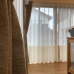 取替前は遮光カーテンとミラーレースカーテンで機能重視でしたが、質感のあるカーテンにチェンジした事でお部屋がナチュラル感のある上質な空間に変わりました。カーテンレールも丈夫な物に取り換えたので、動きもスムーズで使い易くなりました。