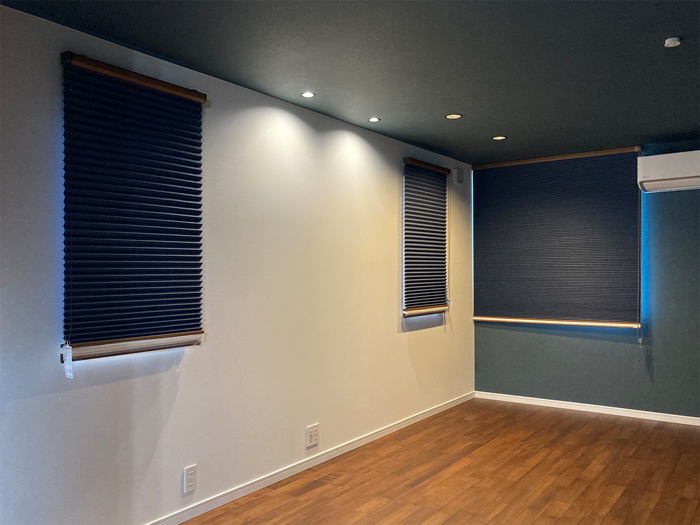 奥様より、リビングはとても私の好みです!と喜んでいただけました。寝室はご主人のお好みに合わせて奥様がお選びになりました。全て遮光でとなると、商品が限られてしまうのですが、その中でも気に入っていただける施工が出来た事がとても良かったです。