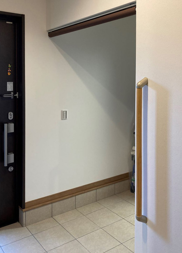 取付前は間仕切りをつける事で、玄関が狭く感じてしまうのでは、と心配していましたが全く問題なく、色柄とも気に入っていただきました。