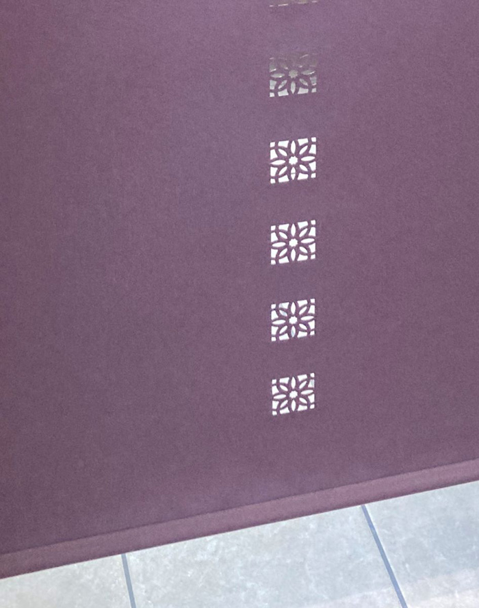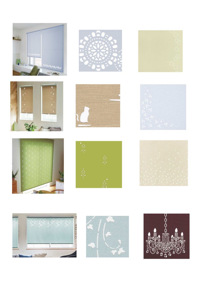 スッキリとした印象で開閉しやすいロールスクリーン、かつさりげなくオシャレに感じてもらえる柄をおすすめしました。トーソーのロールスクリーンは、シンプルな無地の生地にレーザーカットで切り抜いたデザインを施す事ができます。22種類のデザインからお選びいただけます。
