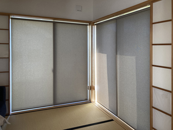 計算上では設置可能なサイズでしたが、実際取り付けてみて、サッシや障子に当たる事なく操作できる事を確認してホッとしました。当初の目的の日差しを防ぐという所も、程よく日差しをさえぎってくれるとの事で喜んでいただけました。